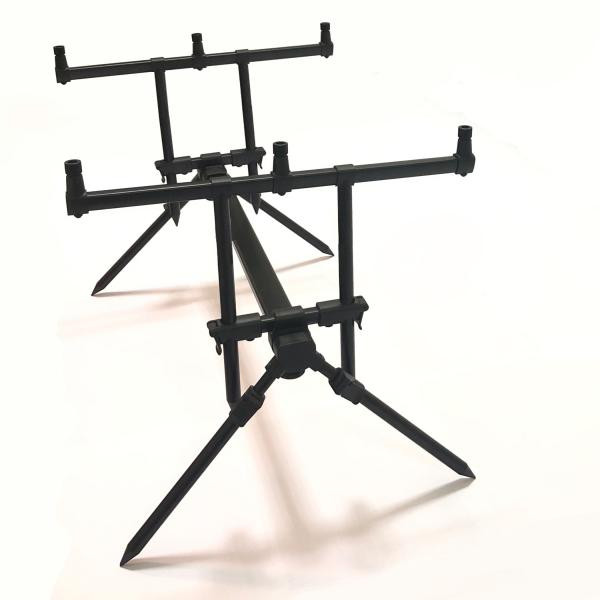 A buzzer bar-ok lábai hosszúak, teleszkóposan állíthatóak és leszúrhatóak a talajba, ezért a rod-pod-ot nem csak önmagában, hanem az úgynevezett goal post-t(buzzer bar+leszúró) is használhatjuk külön-külön. A goal post-kat könnyen kivehetjük a helyükről mert gyors csatival vannak csatlakoztatva. A rod-pod alapanyaga könnyű(1,8kg) alumínium így kicsi a súlya, de mégis merev, masszív egészt alkot felállítva a parton. A rod-pod merevségét nem csak az anyag vastagsága, hanem a gerinc és egyes tartóelemek trapéz formája is részt vesz a merevítésben. A rod-pod nagyon könnyen, gyorsan állítható, minden csatlakozás gyors-csatlakozóval nyílik és záródik. - hossza 72-120cm között állítható, a lábak hossza 30-49cm között állítható, buzzer bar-k hossza 50cm