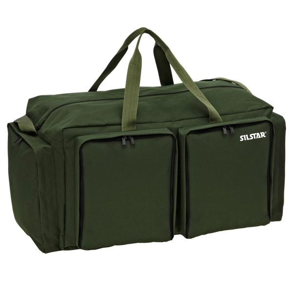 SILSTAR PONTYOZÓ TÁSKA XL 60X35X35. A SILSTAR pontyozó sorozata, amely valójában bármely horgásznak megfelelő lehet legyen szó pergető, match, stb. horgászati módszerről. A táska strapabíró vastag 100% polyester külső anyaga teljesen vízálló és nagyon magas a kopásállósága. Nagy erős cipzárak és erős vastag pánt és hord fülek állnak rendelkezésre a kényelmessé téve a táska hordását. A táska nagy belső rakódótérrel és 4db külső nagyméretű zsebbel rendelkezik, melyek mérete minden esetben a lehető legnagyobb, hogy sok kiegészítő férjen el benne. A Pontyozó táska 2 méretben vásárolható meg L - 50*30*35cm; XL - 60*35*35cm